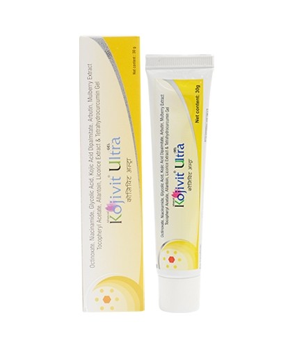 Kojivit Ultra cream is a branded skincare/skin whitening product sold by Micro Labs Limited and is available as a 30-gram tube of cream for topical application in dermashoppy store. Kojivit Ultra cream is prescribed in the management of post-inflammatory pigmentation, skin hyper pigmentated dark patches, freckles, and acne scars. Kojivit Ultra is an all-natural skin whitening solution with super-effective ingredients such as Niacinamide, Glycolic Acid, Kojic Acid Dipalmitate, Arbutin, Mulberry Extract, Tocopheryl Acetate, Allantoin, Licorice Extract, Tetrahydrocurcumin, and Octinoxate sunscreen component.